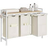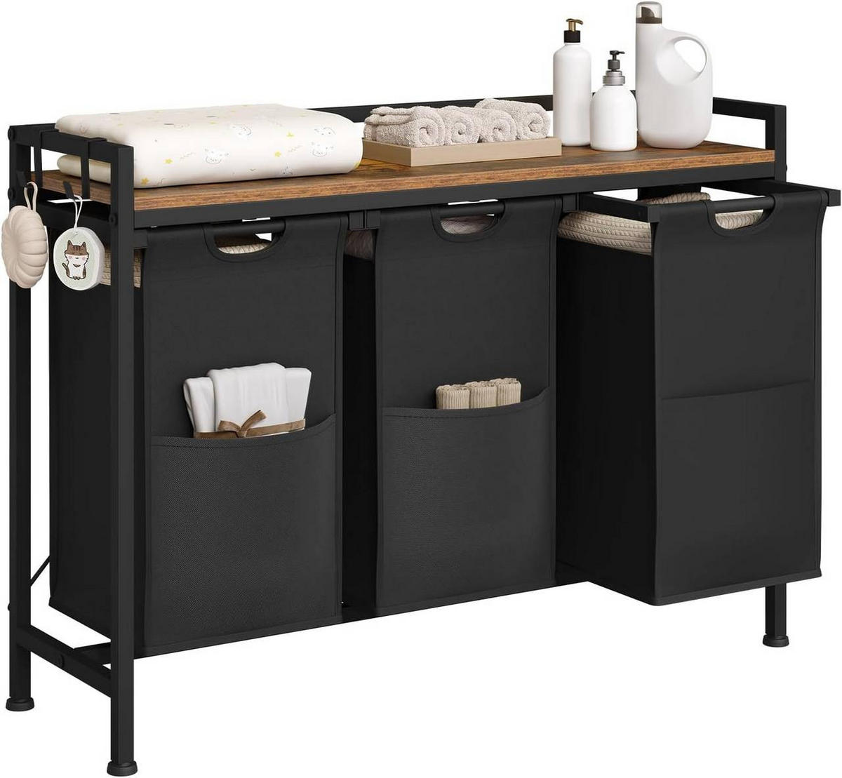 VIELFÄLTIGER STAURAUM: 3 Wäschekörbe mit Seitentaschen bieten sortierten Stauraum für Kleidung, Bettwäsche. Auf der Abdeckplatte (Belastbarkeit: 15 kg) können Sie Waschmittel, Toilettenartikel usw. abstellen. An 2 zusätzlichen Haken (jede 2 kg belastbar) lassen sich Handtücher aufhängen.