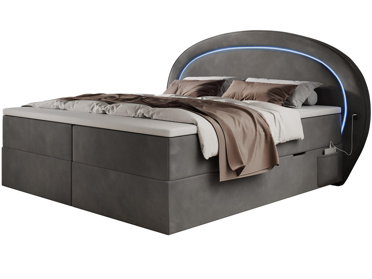 BOXBETT Nova 2 grau 200/200 cm mit LED H3 - Grau, Textil (200/200cm) - wonellowonello