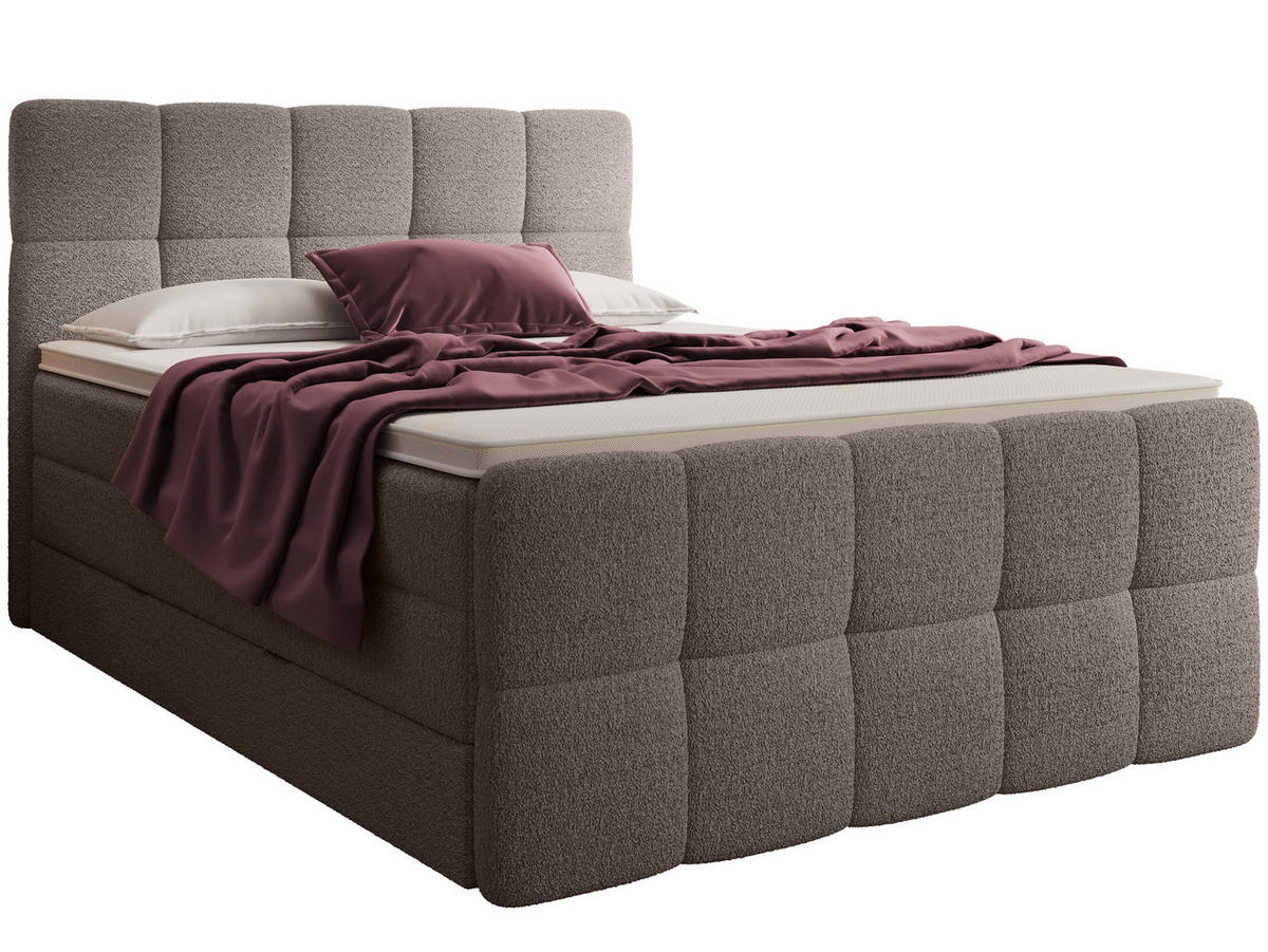 Das Boxspringbett MADISON 2 bietet dir einen traumhaften Komfort und dazu noch jede Menge Stauraum. Das weich gepolsterte Kopfteil eignet sich ideal zum Entspannen und macht das Doppelbett zum Mittelpunkt im Schlafzimmer. Durch den herrlich weichen, aber dennoch strapazierfähigen Boucle-Stoffbezug erhält das Bett ein besonders elegantes Design und wird gleichzeitig zu deinem langjährigen Begleiter. Das zusätzliche Fußteil verleiht dem Bett nicht nur einen besonders ruhigen und modernen Look, sondern sorgt zusätzlich dafür, dass Matratzen und Topper auf Ihrem Platz bleiben.
