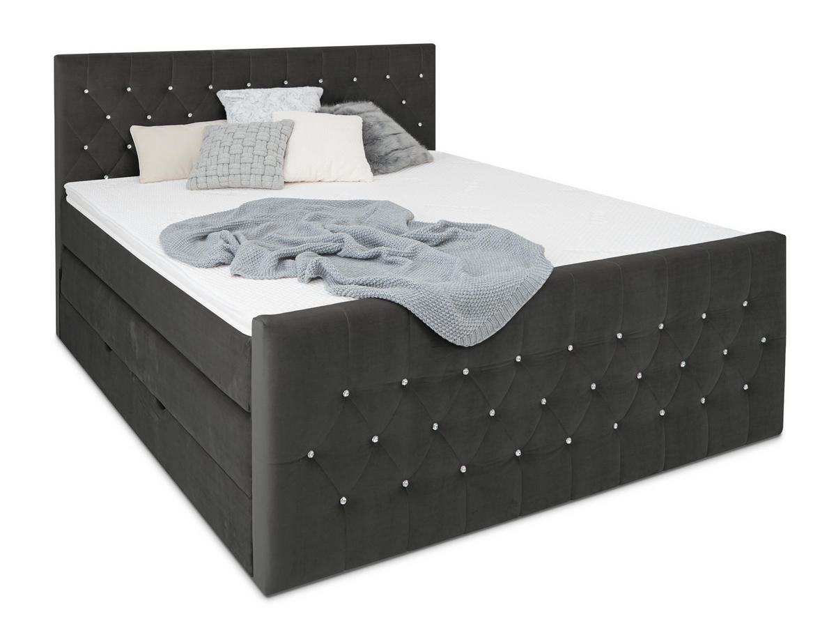 BOXSPRINGBETT Sira Anthrazit 160/200 cm H3/H4 Samt - Anthrazit, Textil (160/200cm) - wonellowonello