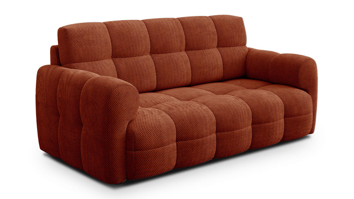 Maße: 183 x 87 x 98 cm, 64 kg. Sitzhöhe: 43 cm, Sitztiefe: 53 cm.Anzahl der Pakete: 1 St. 186x101x77cm, 67kg. Keine Montage erforderlich.Die Füße: 4 cm, schwarz. Keine Montage erforderlich. Stoff: Der Waffelstoff zeichnet sich durch ein klares, dreidimensionales Gewebe in Form von regelmäßigen Würfeln aus, was ihm eine charakteristische Textur und Weichheit verleiht. Es fühlt sich samtig an und ist dick und gleichzeitig stark und verformungsbeständig und kombiniert ein dekoratives Erscheinungsbild mit praktischer Haltbarkeit und Benutzerfreundlichkeit. 100% Polyester, 300 g/m2, 35.000 Martindale, pilling resistance: 5, lightfastness: 6-7, dunkelorange. Schaumstoffschichten unterschiedlicher Dichte sorgen für bequemes und langlebiges Sitzen, während das mit Silikonfasern gefüllte Rückenkissen außergewöhnlichen Komfort garantiert.Das Modell MELLOW ist ein außergewöhnliches Sofa mit einer charakteristischen, weichen Form, inspiriert vom Trend der „Bubble Sofa“. Markante, gepolsterte Module erzeugen einen dreidimensionalen Effekt, der zum Entspannen einlädt und gleichzeitig ein starkes dekoratives Highlight im Raum setzt. Es passt perfekt zu modernen Arrangements, Loft-Interieurs sowie zu trendigen Wohnstilen im Vintage-Look. Dank seiner harmonischen Proportionen und der besonderen Stoffstruktur wird das Sofa zum Mittelpunkt des Wohnzimmers – komfortabel und äußerst stilvoll.Aufgrund des handgefertigten Charakters unserer Möbel und der Flexibilität der verwendeten Materialien können die tatsächlichen Abmessungen der Möbel um einige Zentimeter von den angegebenen Maßen abweichen. Bitte achten Sie darauf, dass das bestellte Möbelstück in die Gänge passt und die Lieferung korrekt erfolgen kann. Die Wahrnehmung von Farben ist individuell und hängt von der Beleuchtung und der Umgebung der Möbel ab. Fotos von Möbeln, die auf verschiedenen Bildschirmen angezeigt werden, können farblich leicht voneinander und vom Original abweichen. Wenn Sie Zweifel an der Farbe oder Textur des Stoffes haben, kontaktieren Sie uns bitte und bestellen Sie Stoffmuster.