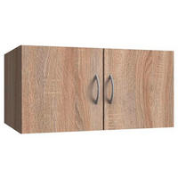 Dieser ca. 80 cm breite Aufsatzschrank in Eichefarben rückt Zweckmäßigkeit in den Fokus, indem er die seinem Format entsprechenden Schränke aus derselben Serie funktional ergänzt. Hinter der den 2 Drehtüren können Sie einiges aufbewahren, wofür Sie noch einen ordentlichen Platz suchen.