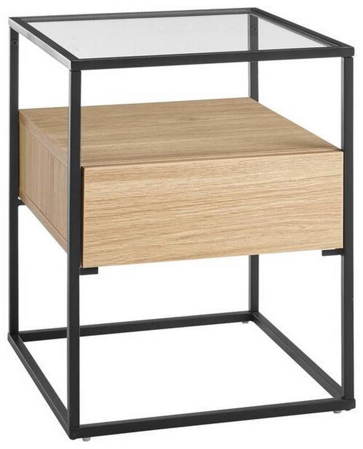 Quadratisch, praktisch, hübsch: Beistelltisch in Eichefarben mit Glas