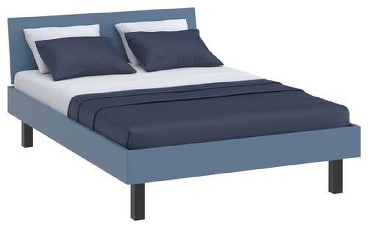 Ein geschmackvolles Ambiente zum Wohlfühlen im Schlafbereich hebt das aus lackiertem Holzwerkstoff (MDF) hergestellte Bett durch seine lebhafte Farbgebung in Blau hervor. Pflegeleicht: Die