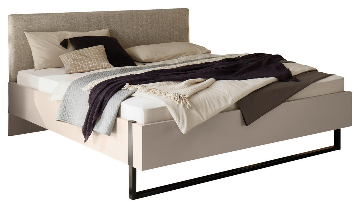 Schwarz werten das Design stylish auf. Machen Sie jetzt den nächsten Schritt zu mehr Entspannung – mit diesem Bett (ca. 180 x 200 cm) in Kaschmirfarben inklusive gepolstertem Kopfteil!