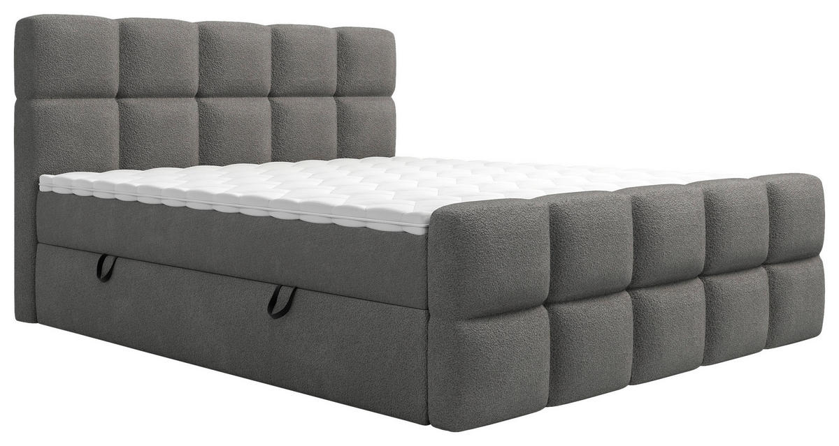 Bettkasten sorgt für Ordnung und stellt Platz für persönliche Accessoires bereit. Verwandeln Sie Ihr Schlafzimmer in eine Oase der Ruhe mit diesem Boxbett (ca. 140 x 200 cm) in Dunkelgrau inklusive Bettkasten, Topper und gepolstertem Kopfteil!