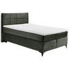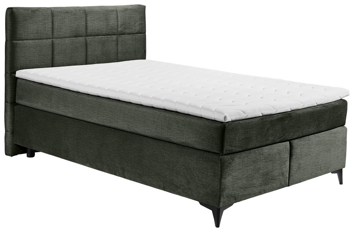 Schwarz das Design. Stellen Sie mit diesem Boxspringbett (ca. 140 x 200 cm) in Dunkelgrün inklusive Matratze, Topper und gepolstertem Kopfteil die Weichen auf Well-Being!