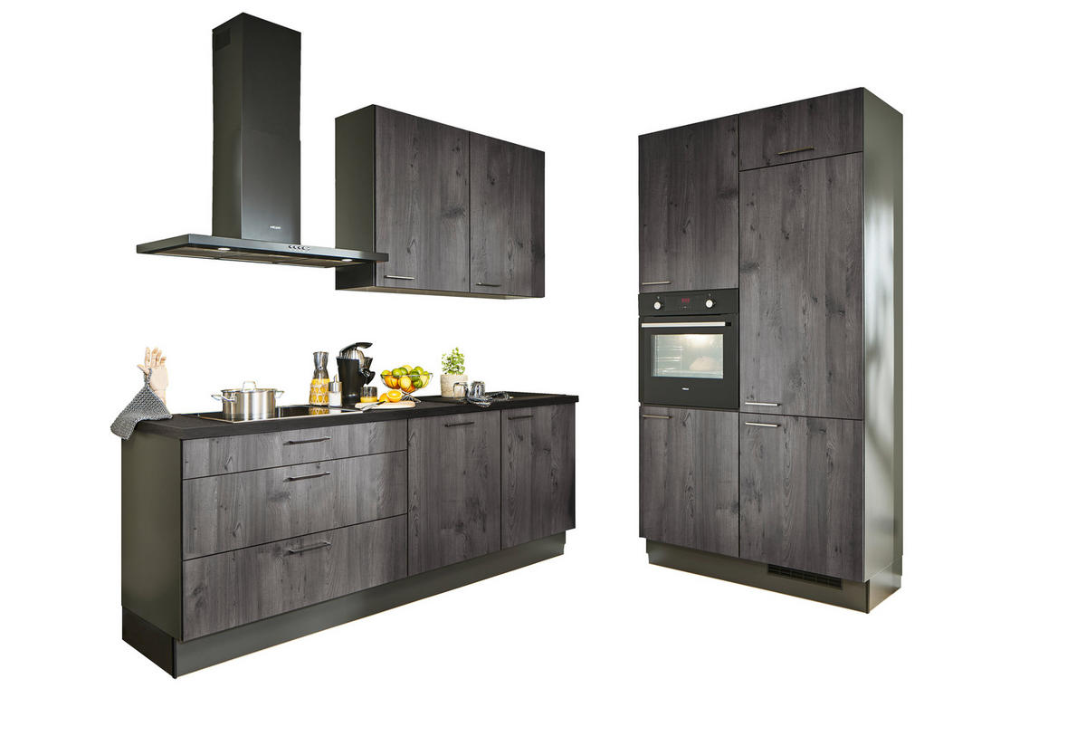 ECKKÜCHE 220/120 cm  in Graphitfarben, Schwarz, Eiche dunkel  - Eiche dunkel/Chromfarben, Design, Holzwerkstoff/Metall (220/120cm) - Xora