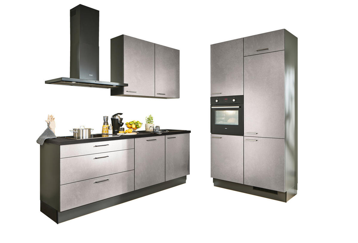 ECKKÜCHE 220/120 cm  in Graphitfarben, Schwarz, Hellgrau  - Chromfarben/Hellgrau, Design, Holzwerkstoff/Metall (220/120cm) - Xora