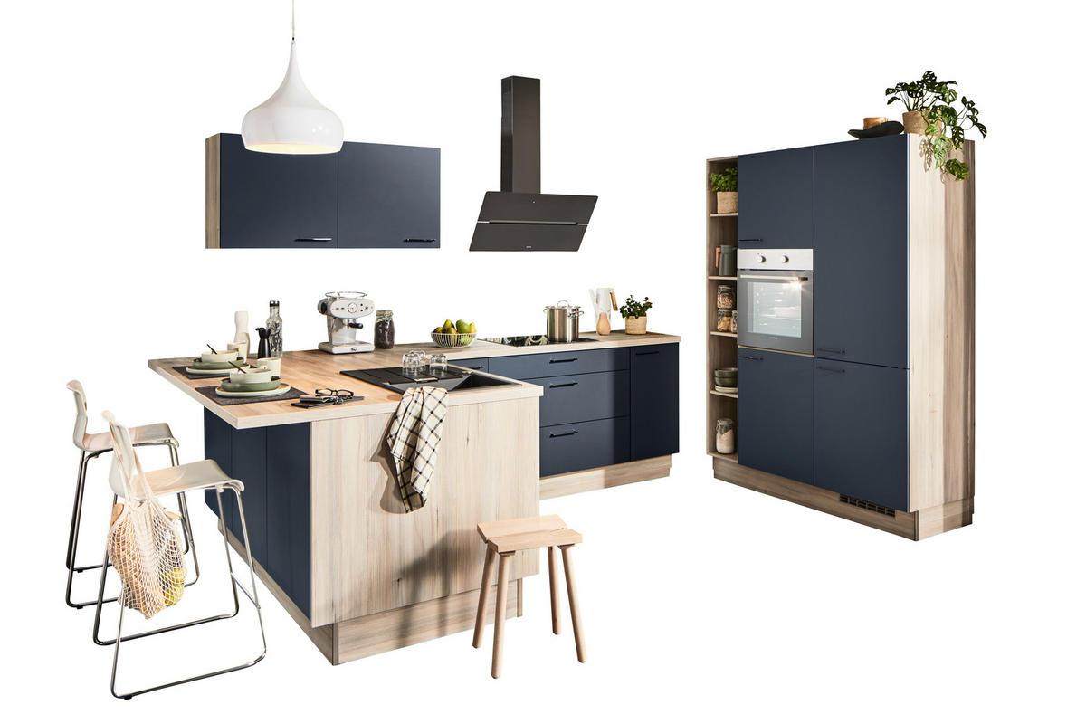 Xora ECKKÜCHE in Blau, Tannenholzfarben