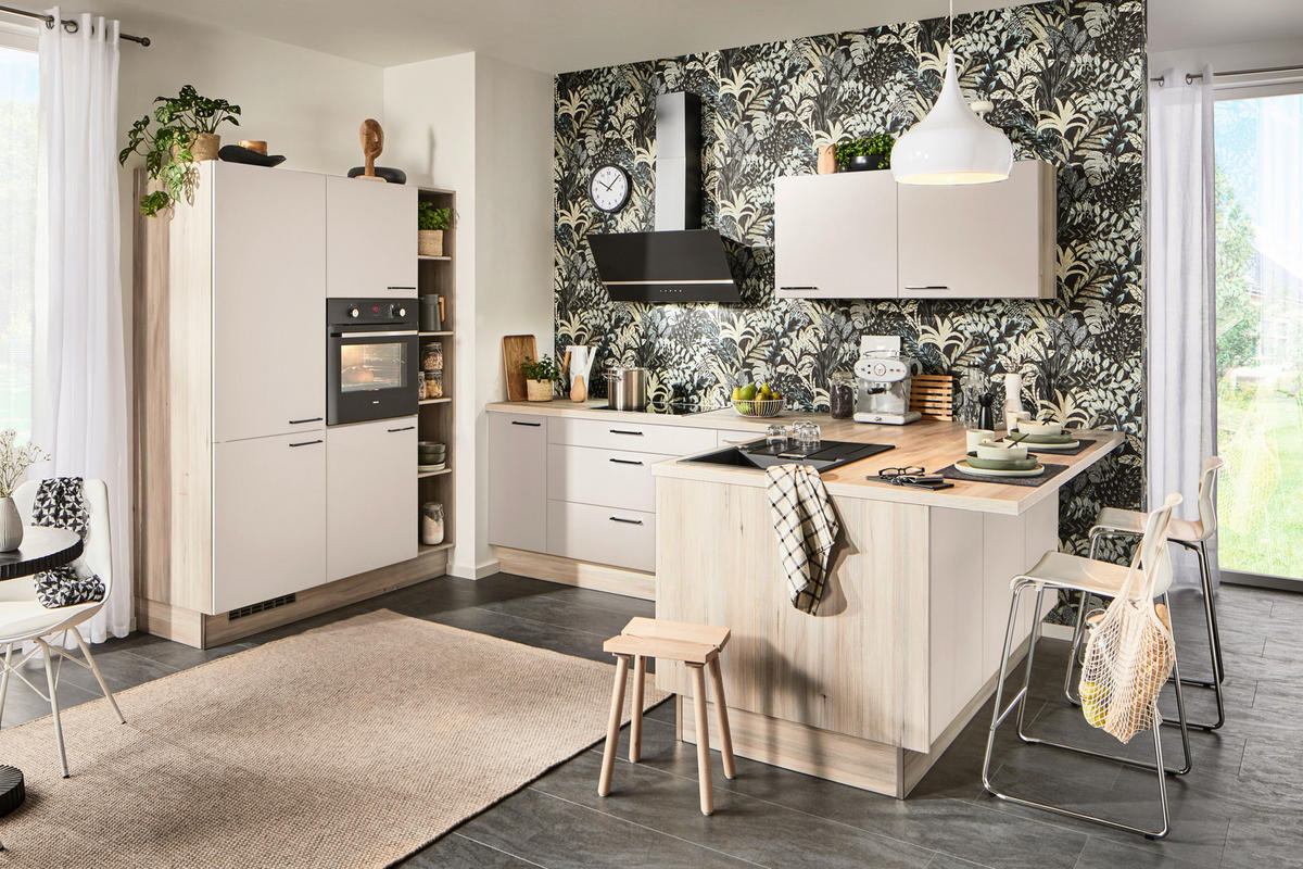 - Nicht im Lieferumfang enthalten: Beleuchtung, Besteckeinsatz, E-Geräte, Lichtleiste, Mülltrennsystem, Nischenrückwand, Sockellade, Spüle, Ab- und Überlaufgarnitur