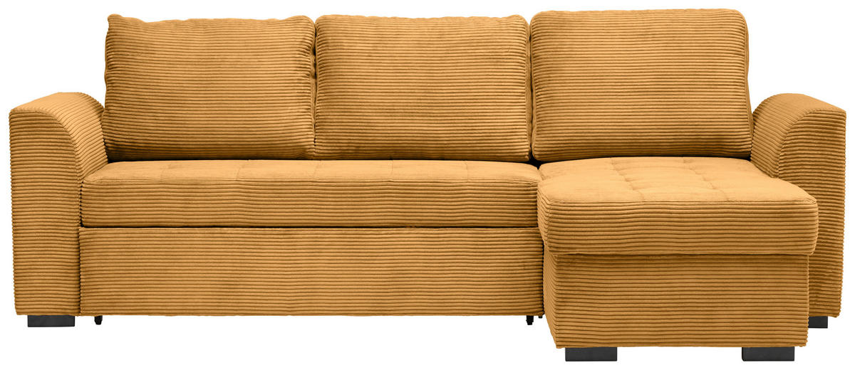 Verwöhnen Sie sich selbst mit diesem currygelben Ecksofa mit Cord-Bezug!