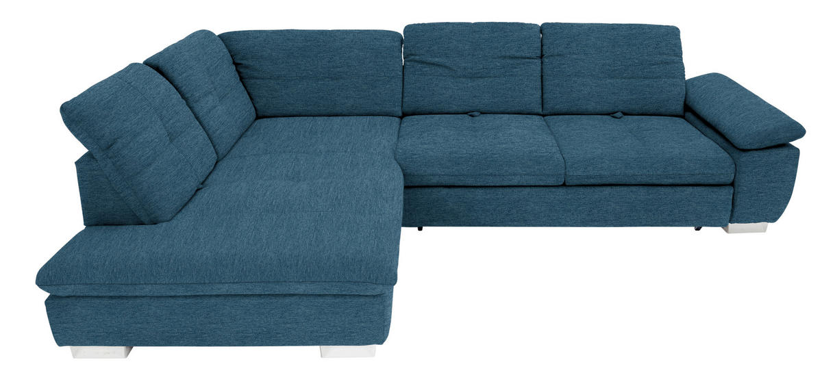 Eine Sonderportion Behaglichkeit schenkt Ihnen dieses dunkelblaue Ecksofa mit Chenille-Bezug. Greifen Sie zu!