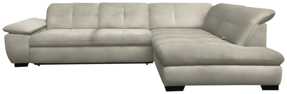 Als treue Begleitung für wonnige Time-outs daheim gesellt sich dieses ecrufarbene Ecksofa mit Flachgewebe-Bezug gerne zu Ihnen!