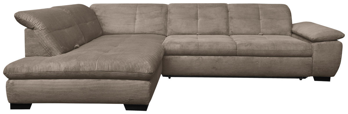Können Sie sich etwas Besseres vorstellen als auf diesem graubraunen Ecksofa mit Cord-Bezug alles um sich herum zu vergessen?