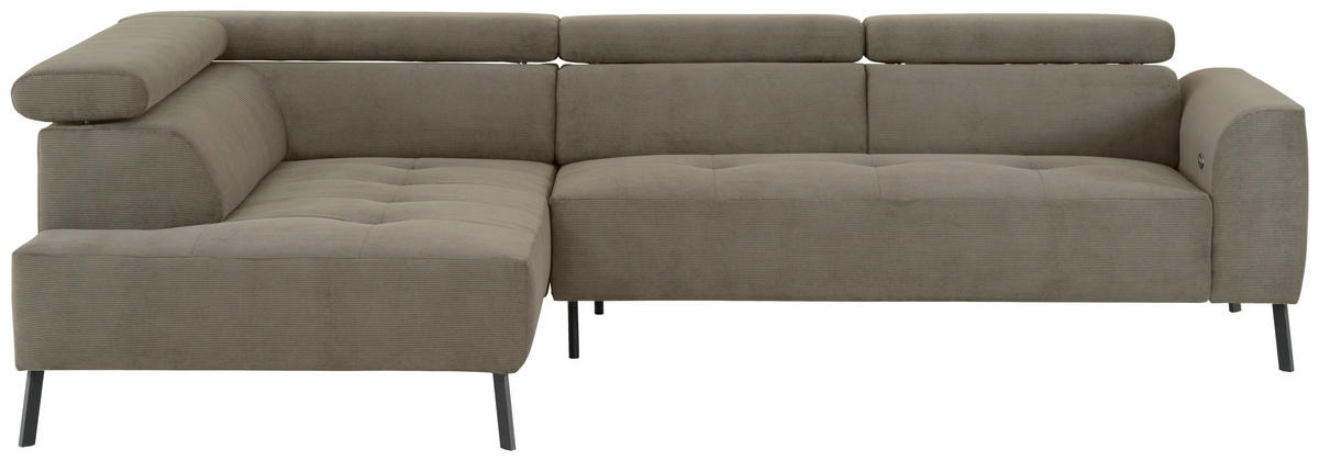 Absolut sehenswert Eine ansprechende sowie zu vielen Einrichtungskonzepten kombinierbare Optik erhält das Polstermöbel durch das dezente Kolorit in Graubraun. Hohe Winkelfüße aus Metall in Schwarz schaffen Bodenfreiheit und komplettieren stylish das Design.