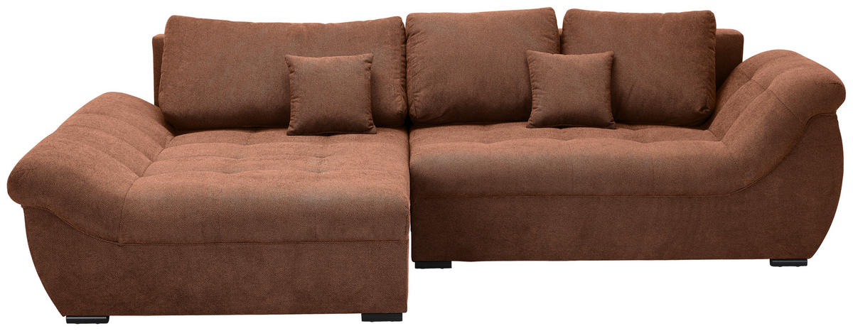 Eine Sonderportion Wohnlichkeit schenkt Ihnen dieses haselnussfarbene Ecksofa mit Flachgewebe-Bezug. Greifen Sie zu!