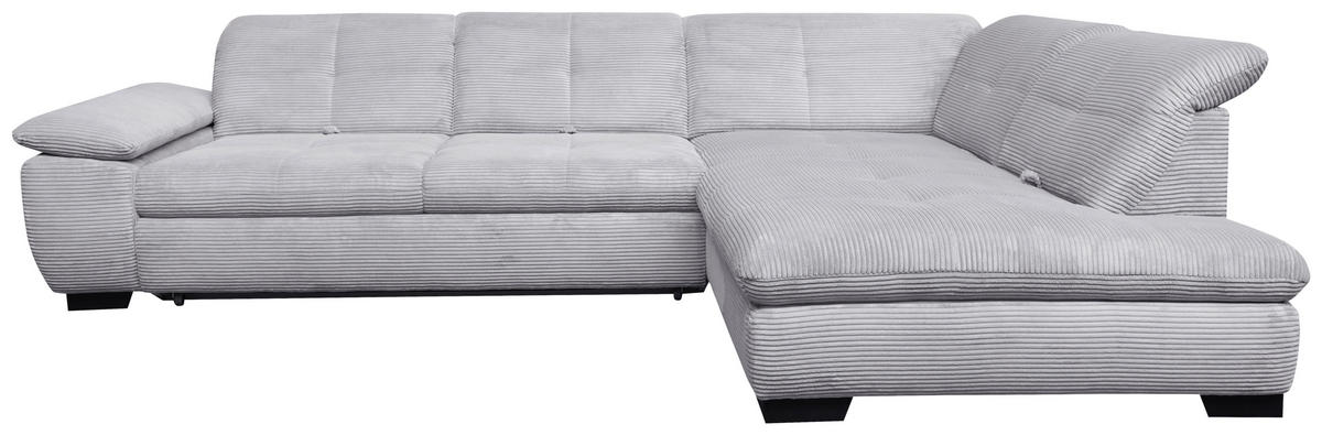 Als treue Begleitung für wonnige Time-outs daheim gesellt sich dieses hellgraue Ecksofa mit Cord-Bezug gerne zu Ihnen!