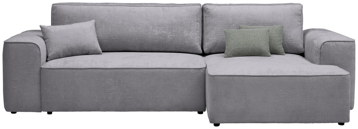 Genießen Sie Ihr Rendezvous mit der wohligen Unbeschwertheit des Seins auf diesem hellgrauen Ecksofa mit Plüsch-Bezug!