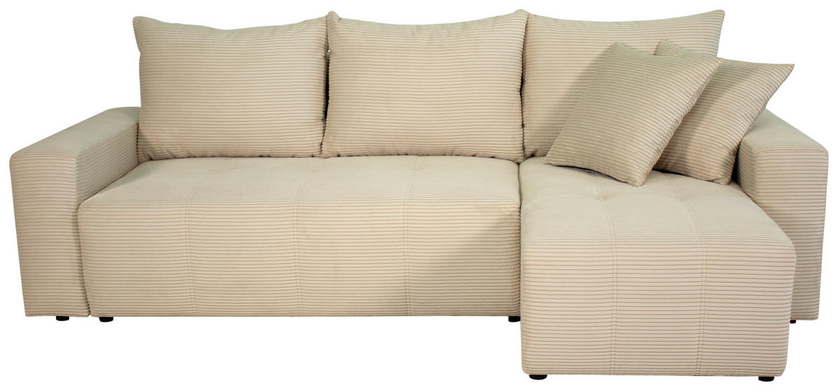 Verwöhnen Sie sich selbst mit diesem beigen Ecksofa mit Cord-Bezug!