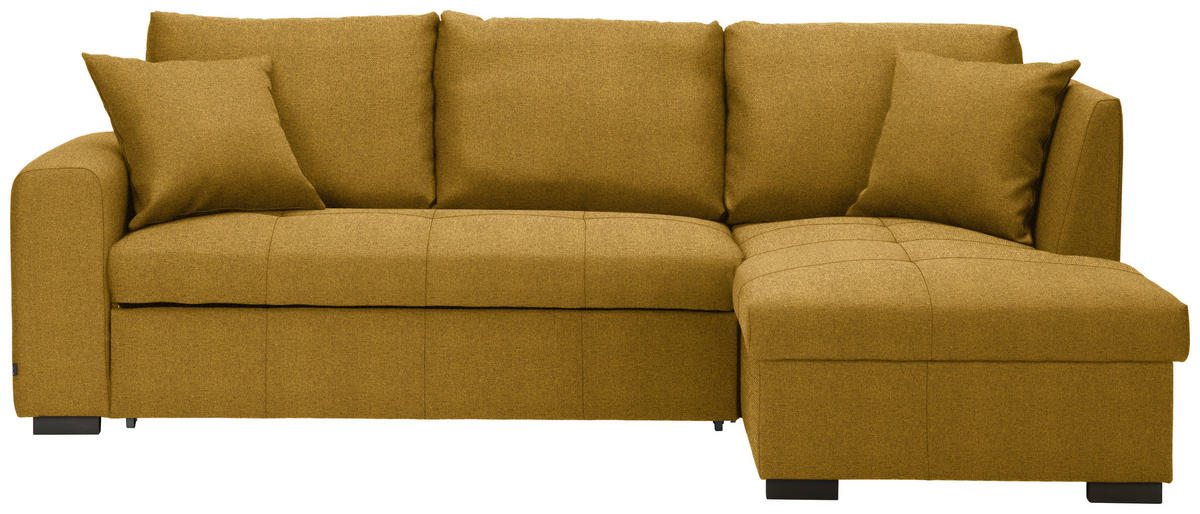 Wo eine behagliche Life-Balance und häusliches Wohlempfinden gefragt sind, führt an diesem dunkelgelben Ecksofa mit Webstoff-Bezug kein Weg vorbei!