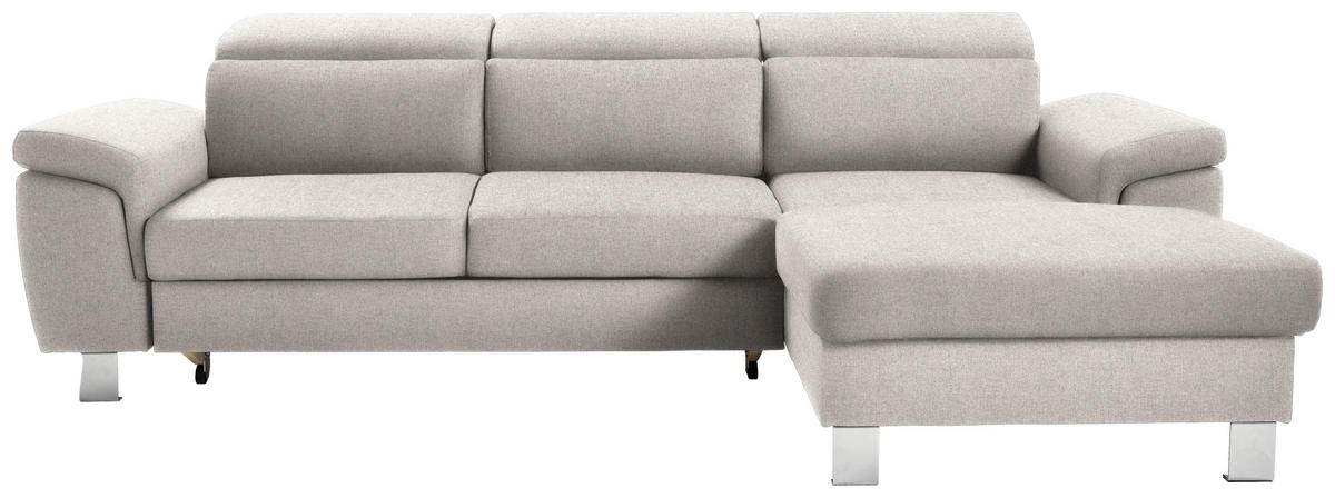 Dieses Design kann sich sehen lassen Eine schicke sowie zu vielen Einrichtungskonzepten kombinierbare Optik erhält das Polstermöbel durch das frische Kolorit in Ecrufarben. Winkelfüße aus Metall in Silberfarben komplettieren stylish das Design.