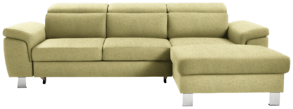 Wenn dieses grüne Ecksofa mit Webstoff-Bezug bei Ihnen einzieht, übernimmt Behaglichkeit das Kommando!