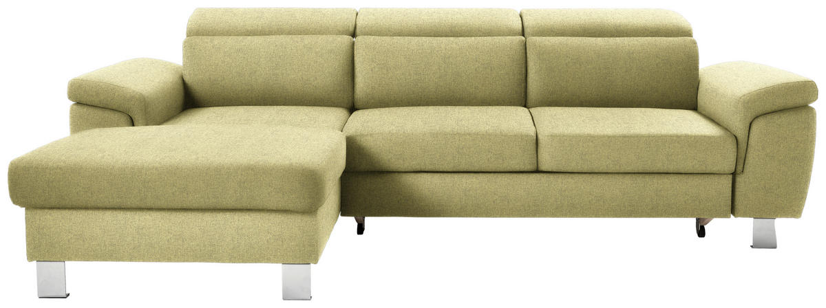 Ihr Aushängeschild, was Behaglichkeit anbelangt: ein grünes Ecksofa mit Webstoff-Bezug, das es in sich hat!