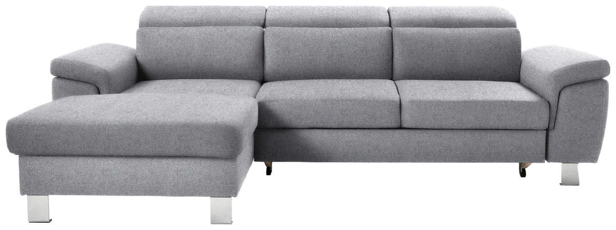 Genießen Sie Ihr Rendezvous mit der wohligen Unbeschwertheit des Seins auf diesem hellgrauen Ecksofa mit Webstoff-Bezug!