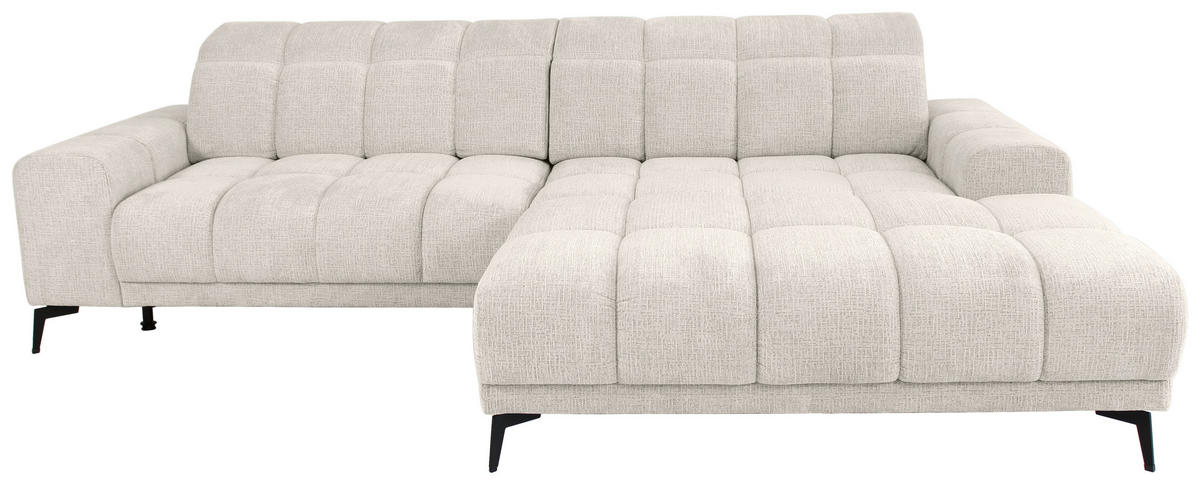 Dieses Design kann sich sehen lassen Ein schickes Ambiente, das unterschiedliche Einrichtungstrends geschmackvoll abrundet, kreiert das Polstermöbel mit seiner freundlichen Farbgebung in Perlmuttfarben. Durch die hohen, eckigen Füße aus Metall in Schwarz wird das Design stilgerecht komplettiert.