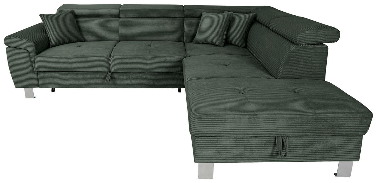 Wenn dieses waldgrüne Ecksofa mit Cord-Bezug bei Ihnen einzieht, dreht sich alles um Behaglichkeit!