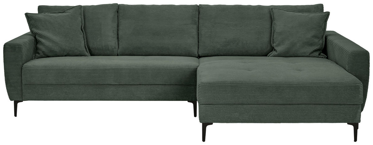 Wenn dieses waldgrüne Ecksofa mit Cord-Bezug bei Ihnen einzieht, dreht sich alles um Behaglichkeit!