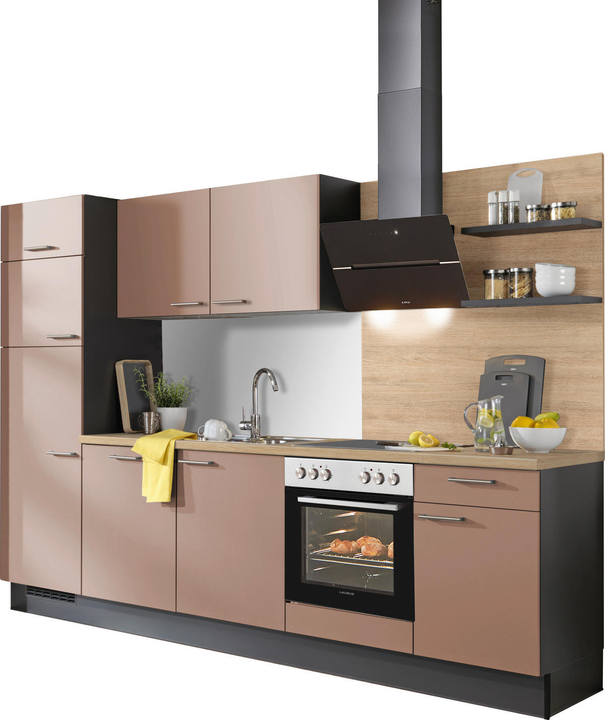 KÜCHENBLOCK 290 cm   in Graphitfarben, Eichefarben, Altrosa  - Edelstahlfarben/Eichefarben, Design, Holzwerkstoff/Metall (290cm) - XoraXora