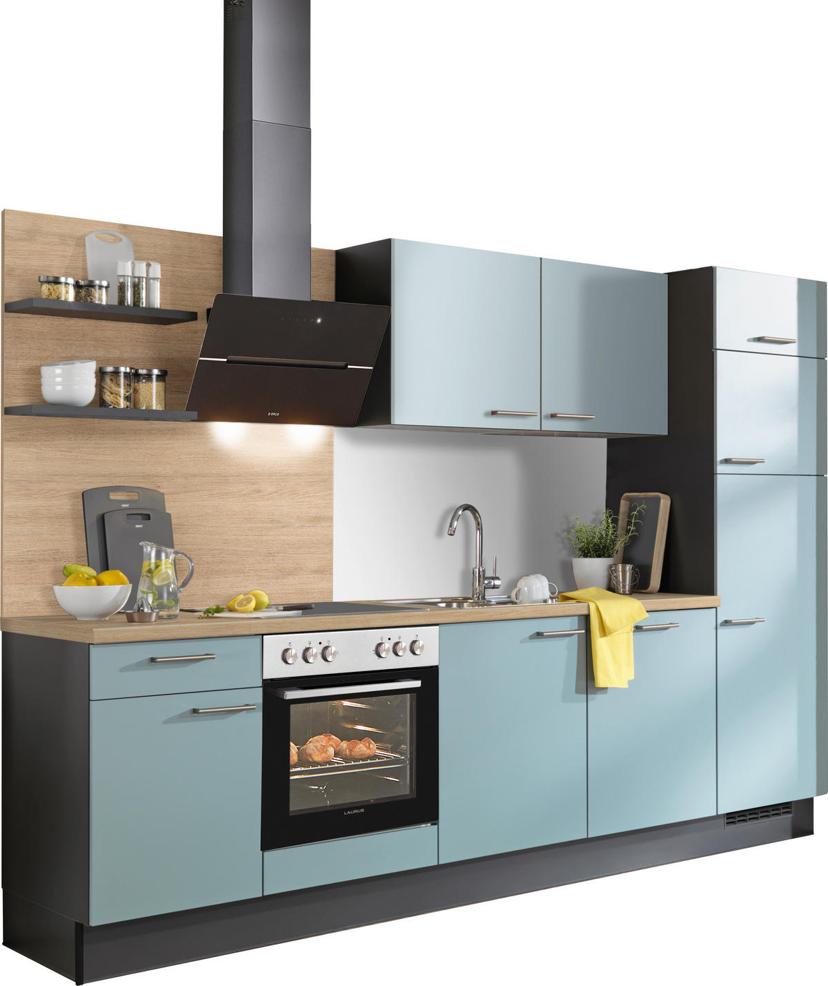 KÜCHENBLOCK 290 cm   in Graphitfarben, Eichefarben, Hellgrün  - Edelstahlfarben/Eichefarben, Design, Holzwerkstoff/Metall (290cm) - XoraXora
