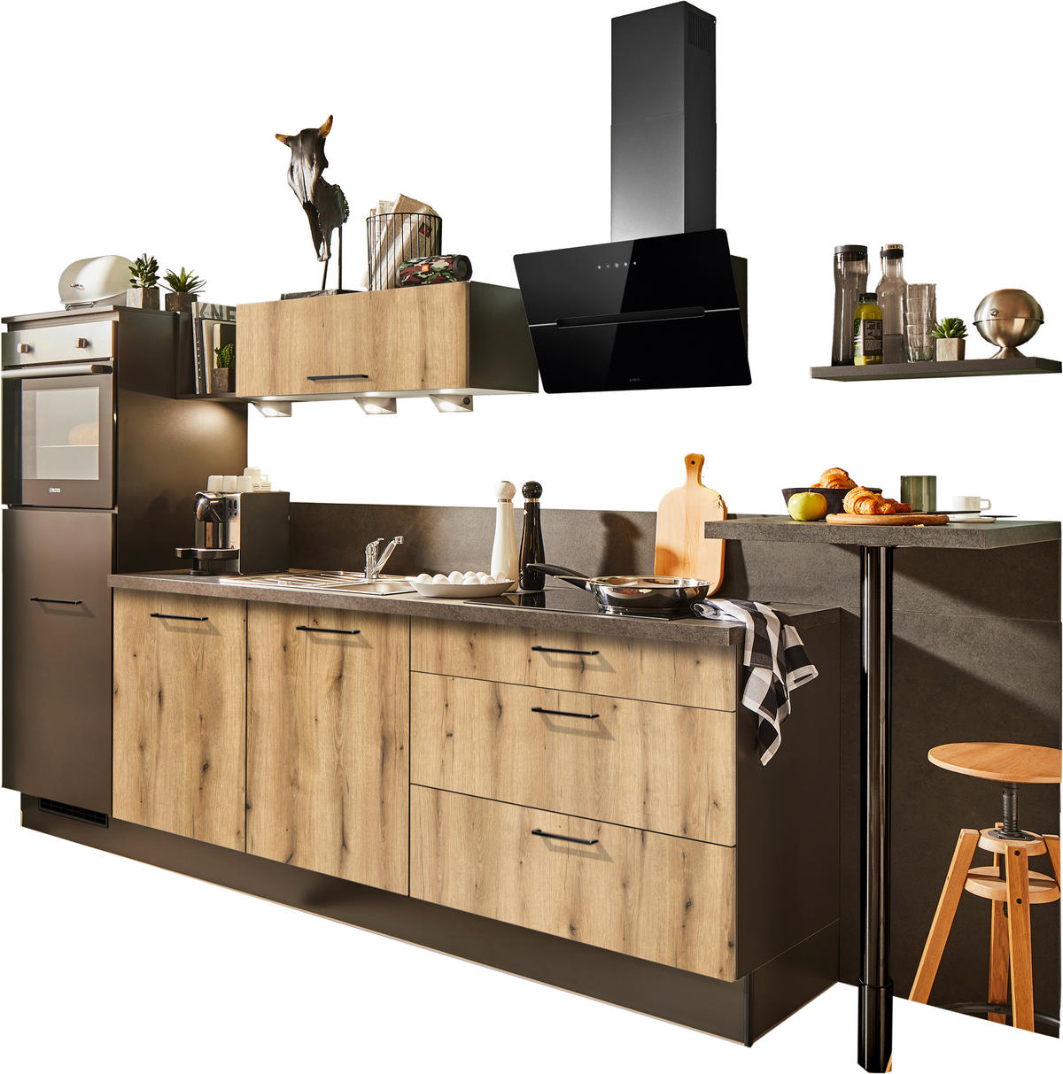 KÜCHENBLOCK 320 cm   in Graphitfarben, Eiche Wotan  - Dunkelgrau/Eiche Wotan, KONVENTIONELL, Holzwerkstoff/Metall (320cm) - Xora