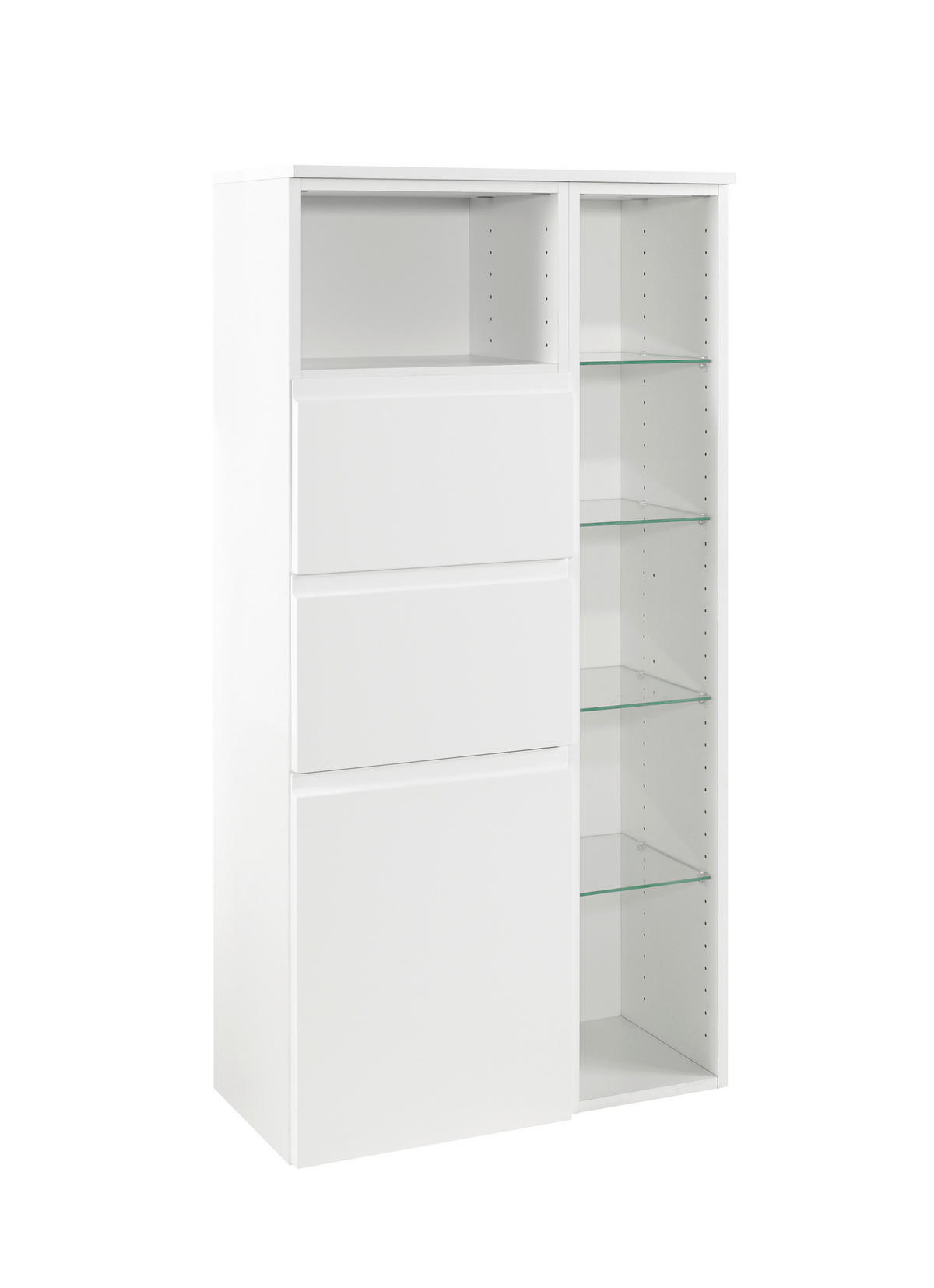 Die Optik in Weiß wirkt zeitlos und passt zu Ihrer Badezimmereinrichtung. Halten Sie die Frotteetücher bereit: Dieser Midischrank wartet schon auf seinen Einsatz in Ihrem Zuhause!