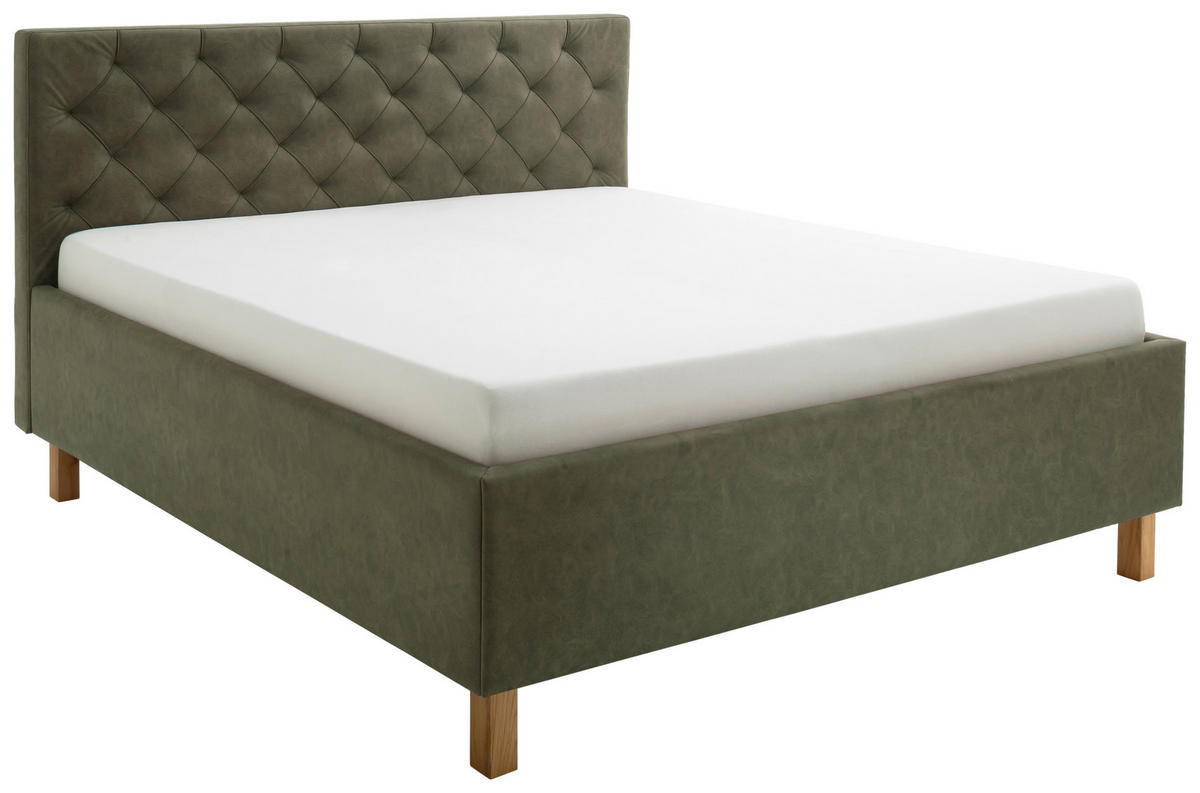 Polsterbett (160 x 200 cm) in Grün mit Bettkasten: zeitlos elegant