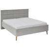 Eichefarben schaffen Bodenfreiheit und vollenden das Design stimmig. Realisieren Sie ein gemütliches Schlafzimmer-Upgrade mit diesem Polsterbett (ca. 180 x 200 cm) in Hellgrau inklusive gepolstertem Kopfteil – weil Qualität und Ästhetik keine Kompromisse brauchen!