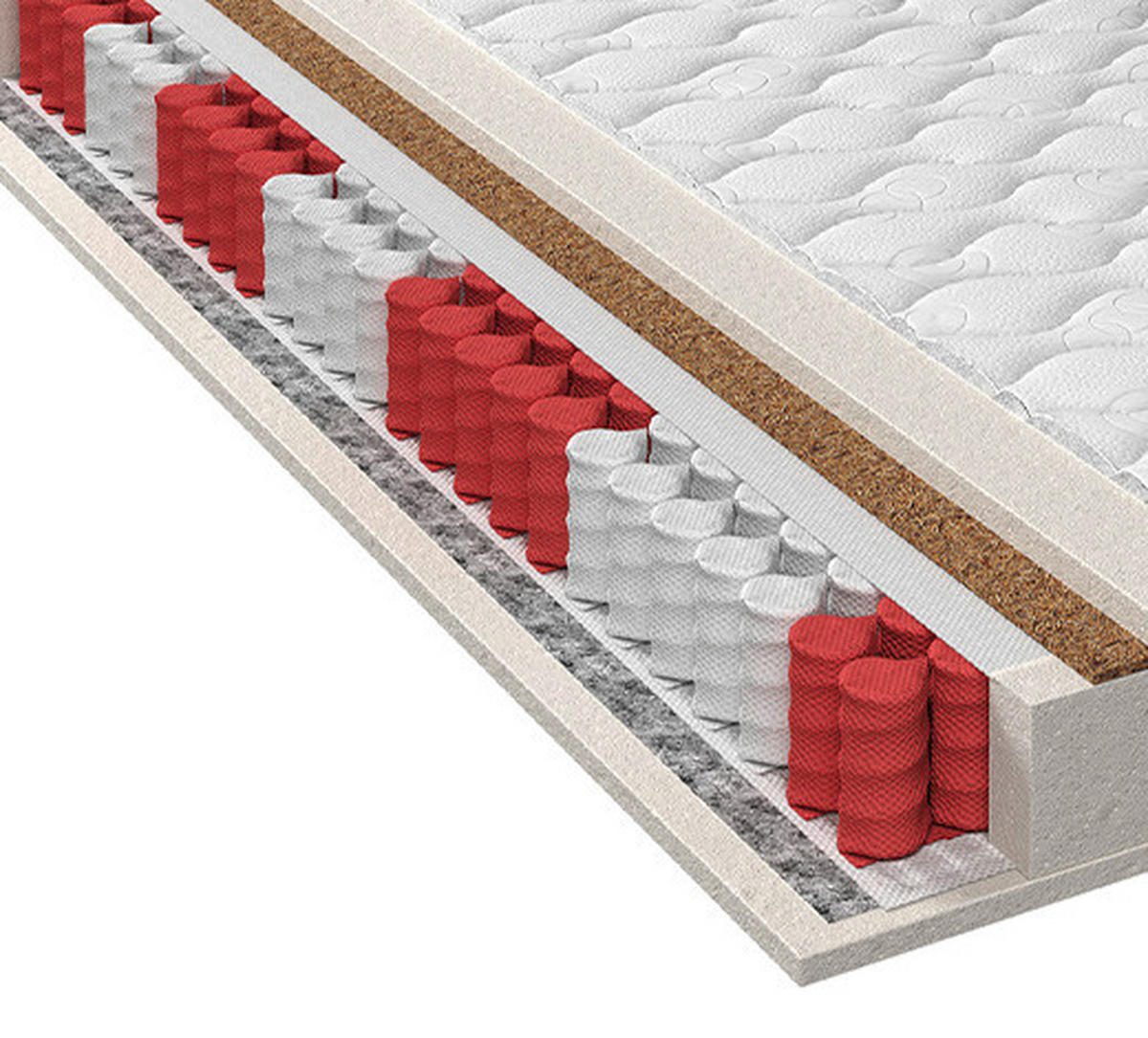 - punktelastischer Taschenfederkern mit Auflagen aus Polyurethanschaum und Kokosfasern