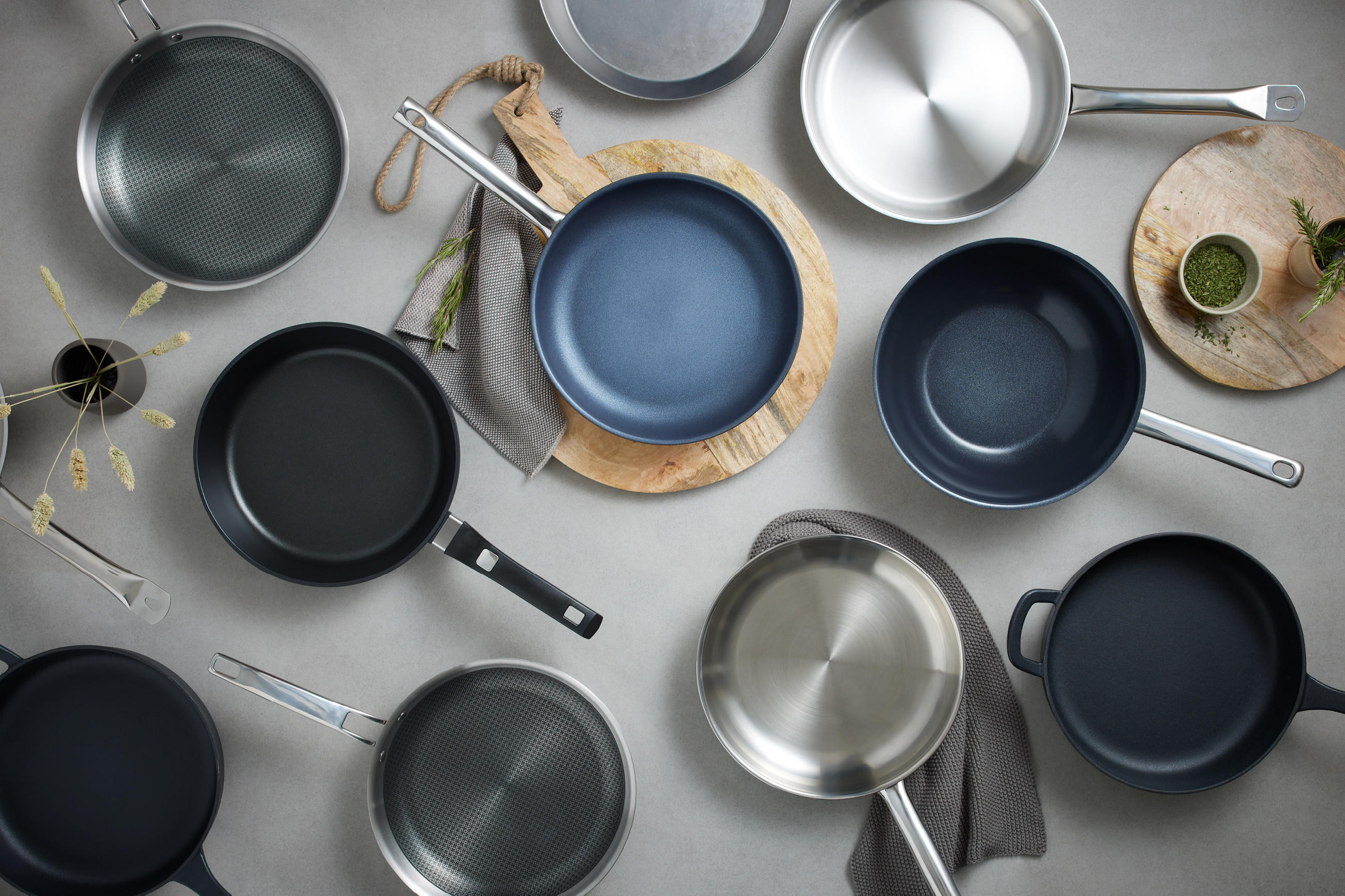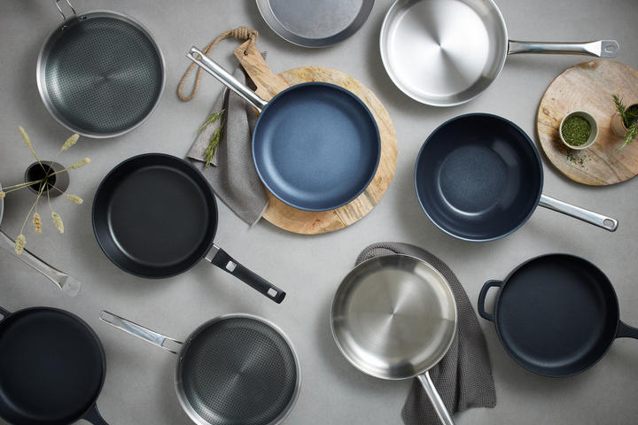 SERVIERPFANNE Edelstahl E76 Jamie Oliver 4-teilig – Bratpfanne, Schmorpfanne, Pfannenwender, Silber