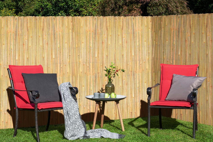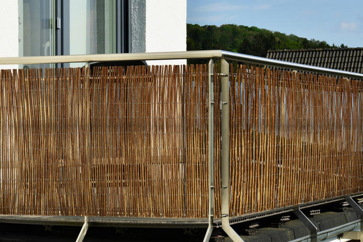 - Für einen rustikalen, gemütlichen Look empfiehlt sich ein Balkon- oder Zauntor-Sichtschutz aus natürlichen Werkstoffen wie Holz, Bambus oder Schilfrohr. Diese sind für gewöhnlich in einem hohen Maße wetterbeständig und können lange genutzt werden. Wer ein idyllisches Lauben-Ambiente zaubern will, wählt einen Holzsichtschutz für den Balkon oder die Terrasse, an dem Efeu emporranken kann – so entsteht über die Jahre eine herrlich grüne Begrenzung Ihres Sitzbereichs.
